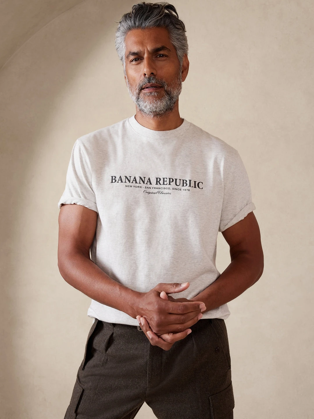 Outlet ⌛ Banana Republic Authentic SUPIMA Logo T-Shirt for men 😀