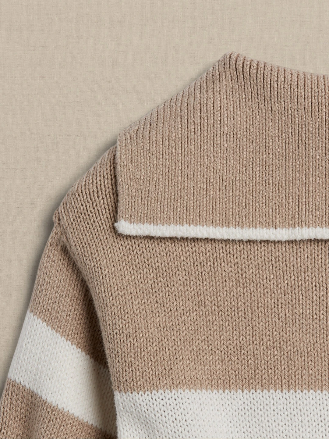 Set a course to adventure! Inspired by vintage sailor sweaters, this traditional design is a modern spin on mariner styles with playful stripes and an exaggerated johnny collar, crafted from sumptuously soft, organic cotton. ORGANIC – Made with certified, organically grown cotton that’s easier on the earth. Sailor collar. Ribbed cuffs and hem. Straight hem. Find Baby In Store Standard fit. Long sleeves. To find the best fit, consult the size chart below –