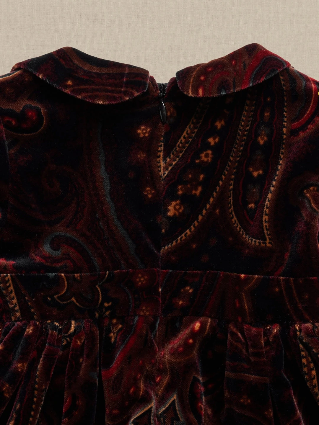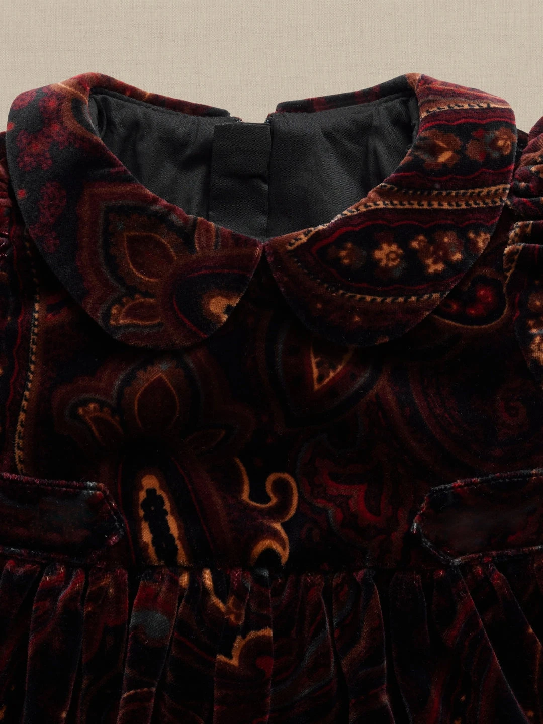 A delight for every occasion, this sumptuous dress is crafted from organic cotton velvet with a traditional Peter Pan collar for playful appeal. May your little one awe friends and loved ones in a style that will have you dreaming that they never grow up. ORGANIC – Made with certified, organically grown cotton that’s easier on the earth. Peter Pan collar with shirring at the shoulders. Puff shoulders. Invisible zip closure at back. Shirred waist. Non-functional waist tabs. Fully lined. Standard fit. Short sleeves. To find the best fit, consult the size chart below –