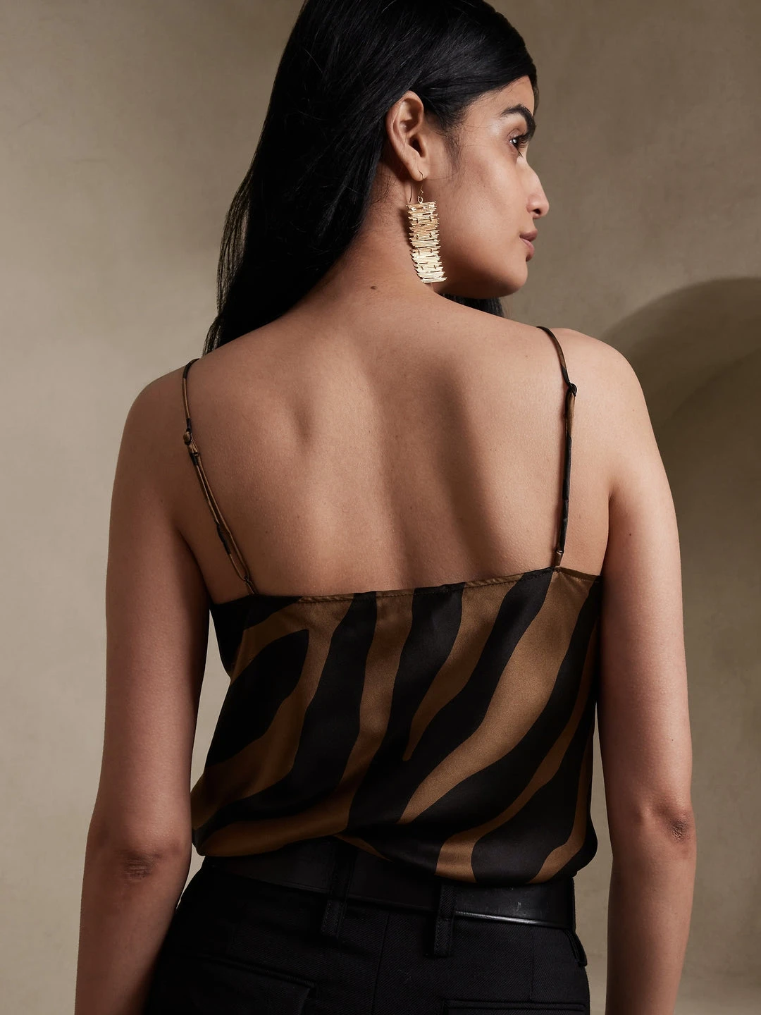 An indulgent, elegant essential, this versatile camisole is crafted from our washable silk charmeuse and cut on the bias for figure-flattering drape. SEMI-FITTED – Cut for a not-too-tight, not-too-loose fit. V-neck. Adjustable slider straps. Dolphin hem. Unlined. Semi-fitted. Sleeveless. Hip length. Front bodice length (size S) – Petite 17.75″, Regular 18.5″, Tall 20.5″ Model – Size S or XL, 5’10” (178cm).