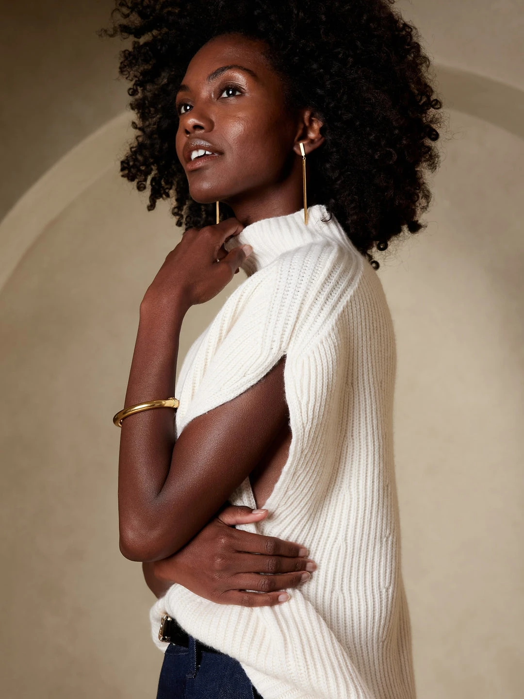 Navigate the seasons in luxurious ease with this ageless poncho, made from a lavish blend of warm wool and lush cashmere. Our designers included extra length and a versatile funnel neckline to keep you cozy from season to season. OVERSIZED FIT – Relaxed fit with a dropped shoulder. GOOD CASHMERE STANDARDβ’ – The high quality cashmere contained in this product has been certified according to the Good Cashmere Standardβ’, caring for the well-being of the cashmere goats, protecting the environment, and supporting the herders that produce it. Funnel neck. Side openings. Straight hem. Oversized fit. Sleeveless. Below-hip length. Body length (size S) – Regular 25″ Model – Size S, 5’10” (178cm).