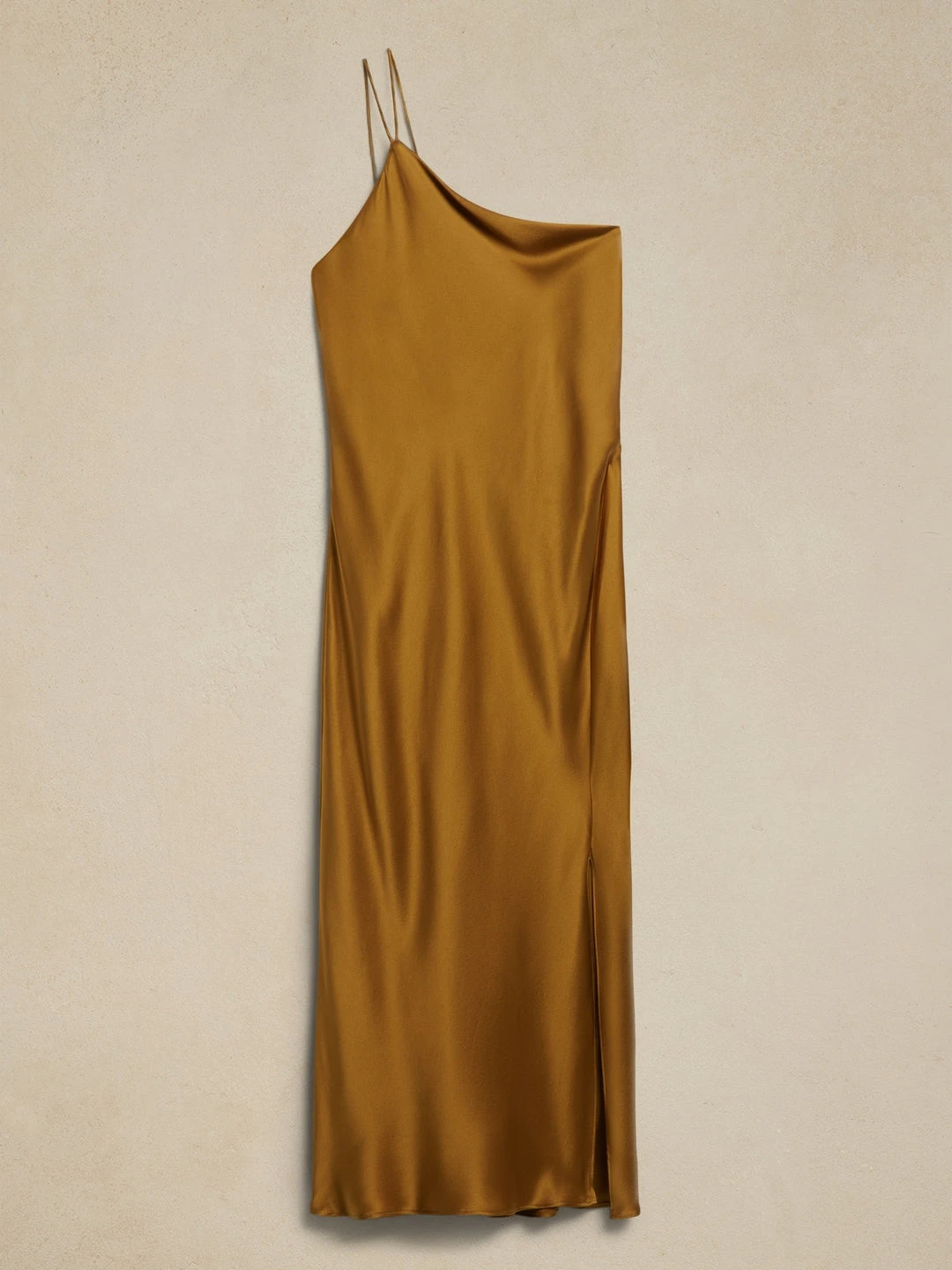 A spectacle of silk fabrication, this gorgeous dress is cut on the bias for incredible drape, with a dramatic scooped back and high slit at the side. Watch it glide in soft, elegant silk charmeuse that shimmers with every move you make. Breathable, Machine Washable. A-LINE – This flowy skirt has a flattering, A-line fit. One shoulder neckline with adjustable straps. High slit on wearer’s left leg. Lined bodice, unlined skirt. A-line – High waisted. Fitted through the waist and hip, gently flared from hip to hem. Sleeveless. Midi length. Body length (size S) – Regular 44″, Tall 47″ Model – Size S, 5’10” (178cm).