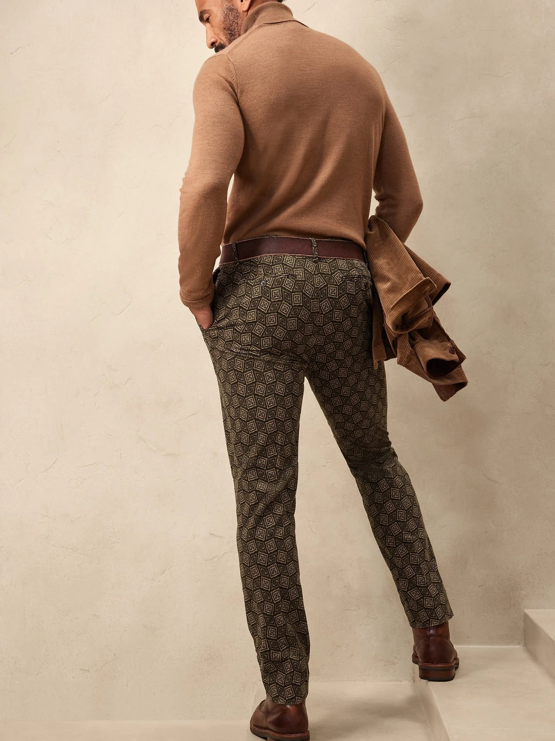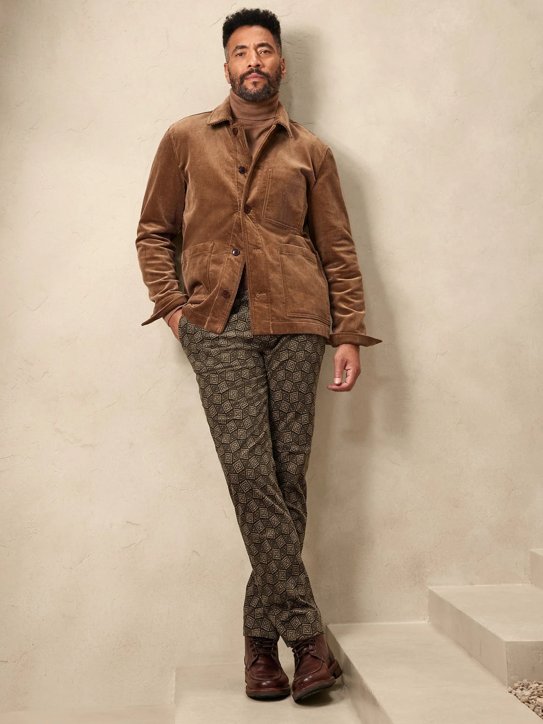 Adorned with our iconic BR insignia, this soft and slim dress trouser is cut in Italian fine wale corduroy and employs our monogram as a signature pattern that almost appears as houndstooth from a distance. TAILORED SLIM FIT – A modern slim fit, with a tapered leg and distinctive break at the hem. FROM ITALY’S OLIMPIAS GROUP – Masters of cotton textiles, Italy’s Olimpias Mill builds on the Veneto region’s reputation by producing some of the most innovative and responsibly made cotton textiles in the world. Zip fly with button closure. Four pocket styling. As seen on Vogue World – New York Tailored Slim Fit – A modern slim fit, with a tapered leg and distinctive break at the hem. Inseams – Extra Short 27.5″, Short 29.5″, Regular 31.5″, Tall 33.5″, Extra Tall 35.5″ Model – Size 32×32 or 36×32, 6’2″ (188cm).