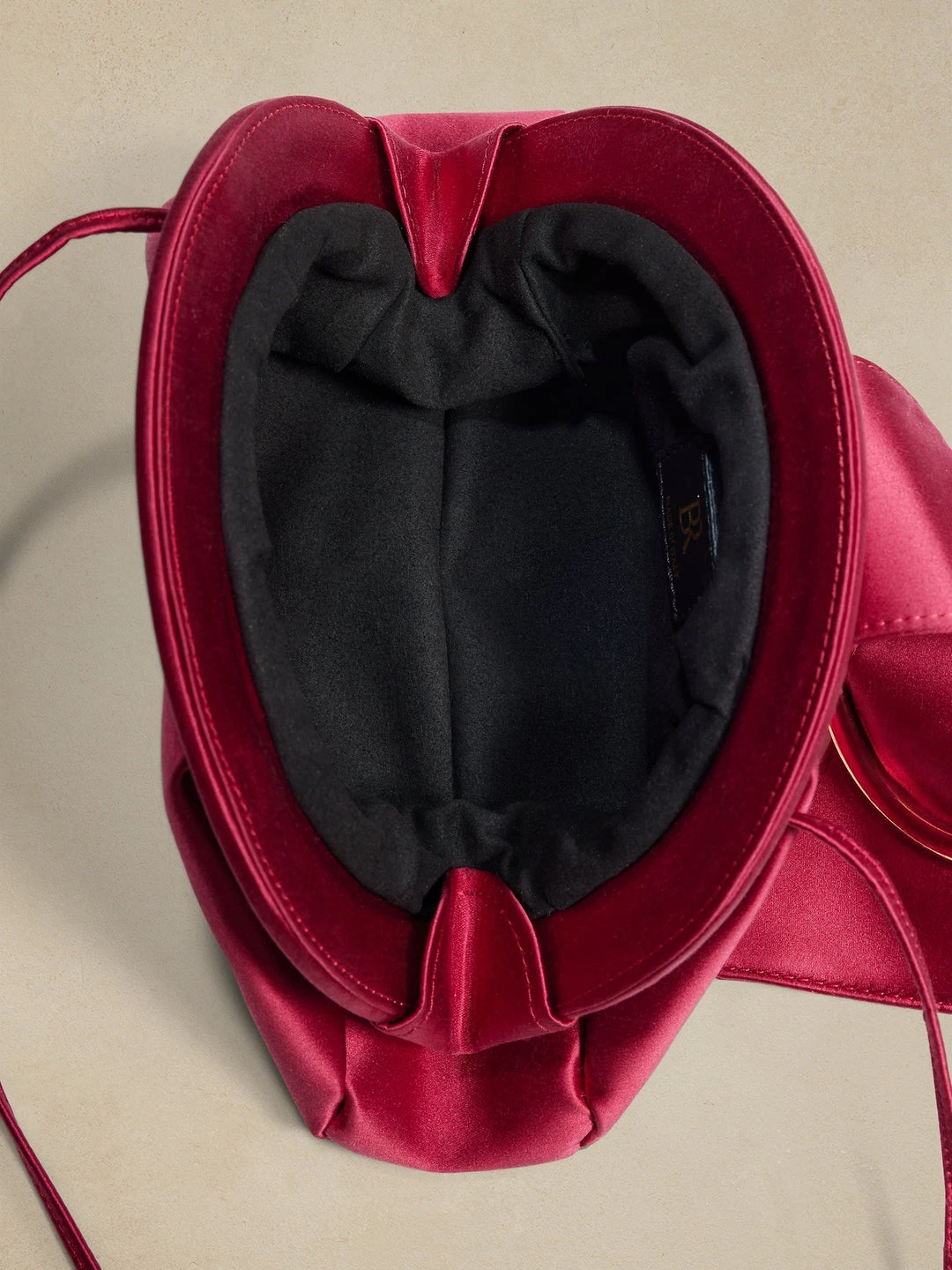 Sumptuously soft, shimmering satin adorns this fabulous clutch, complete with deep gold signature hardware and a removable strap to wear the mini as a crossbody bag when the occasion calls. Magnetic snap closure. Removable crossbody strap. Handmade frame. Made in Italy. Height – 15″ (38cm) Width – 10″ (25cm) Depth – 2″ (5cm)