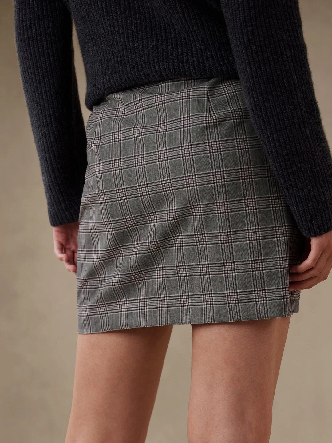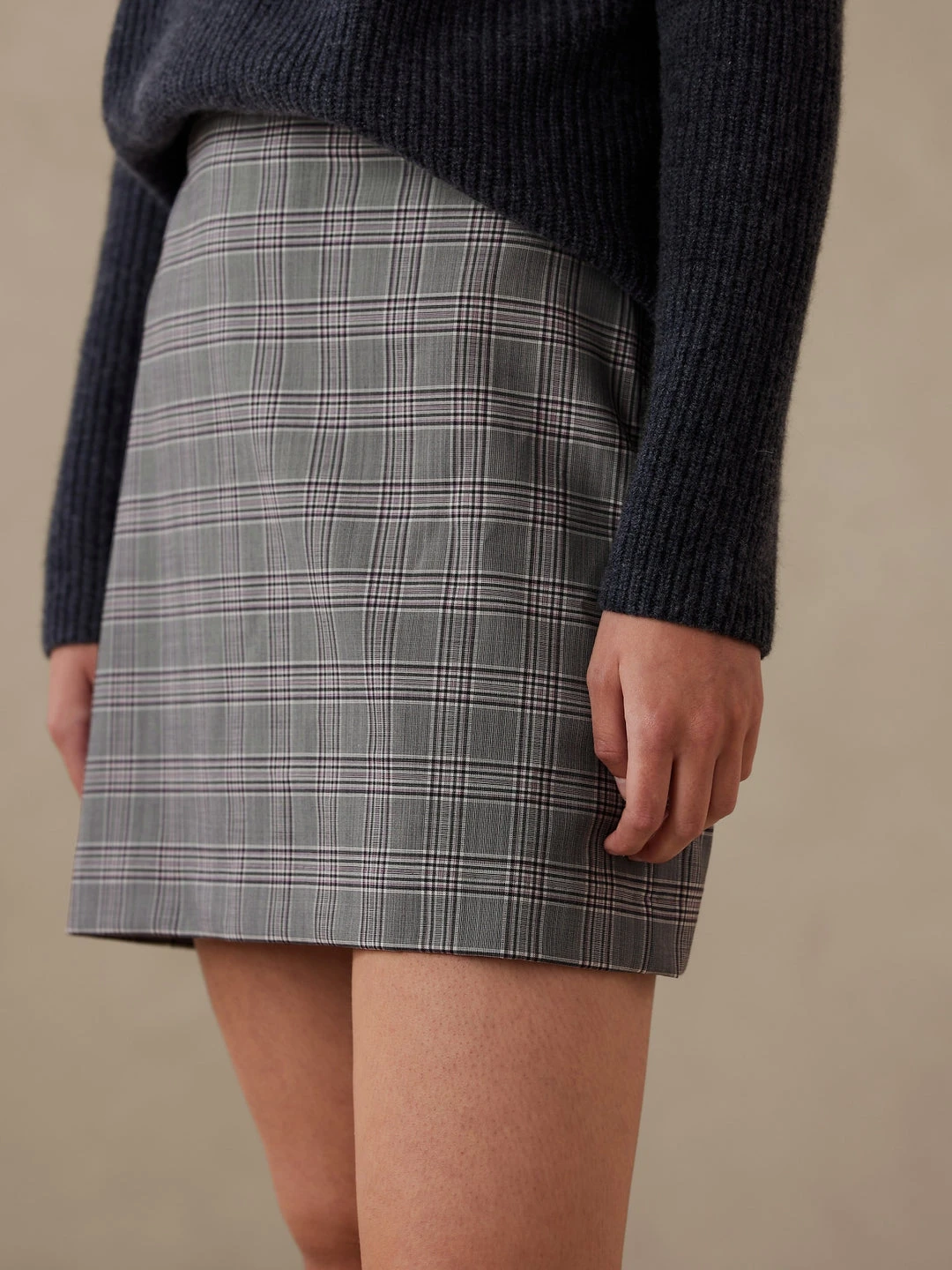 A sleek mini skirt crafted in a timeless, menswear-inspired plaid pattern. Crafted in a smooth wool-blend that is machine washable for exceptionally easy care. Side zip. Fully lined. High waisted fit. A-line fit from hip to hem. Mini length. Skirt length (size 6) – Regular 17″, Tall 19″ Model – Size 2, 5’10” (178cm).