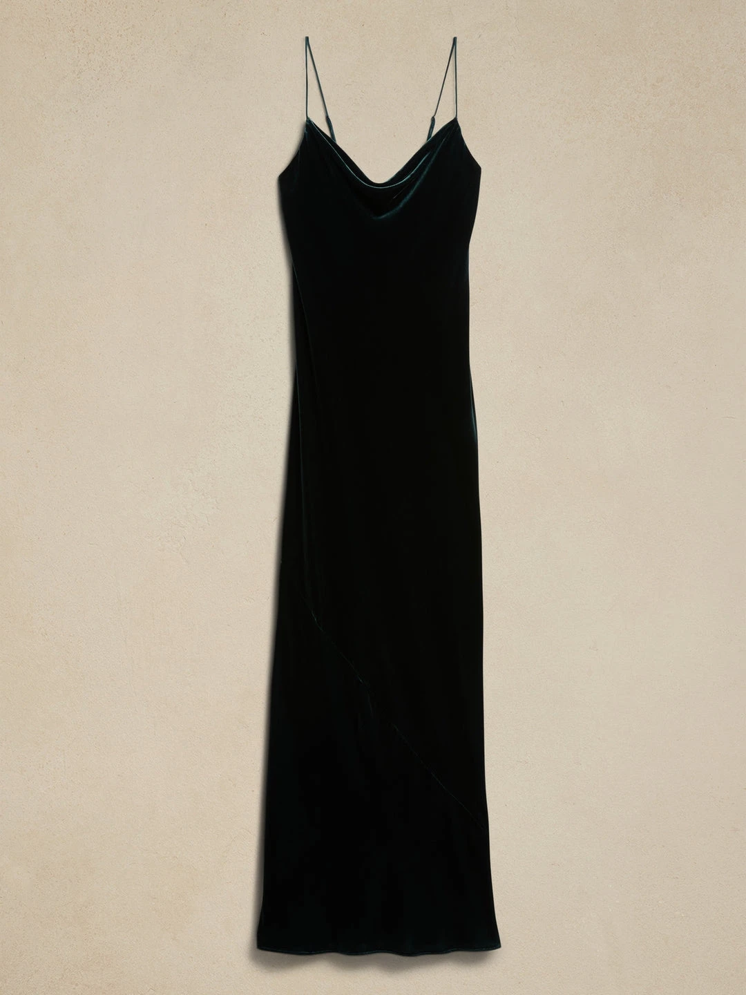 A study in cascading silhouettes, the bias-cut velvet fabric used here has a touch of silk for sumptuous luxury, transforming this slip dress into a sight to behold as it falls across the skin in fluidlike motion, gliding across in slinking form. COLUMN FIT – Semi-fitted, straight through the waist, hip, and thigh. Cowl neck with adjustable slider straps. Bias-cut. Rear slit to the knee. Unlined. Column Fit – Semi-fitted through the chest, straight through the waist, hip, and thigh. Sleeveless. Midi length. Body length (size S) – Petite 47″, Regular 50″, Tall 53″ Model – Size S, 5’10” (178cm).
