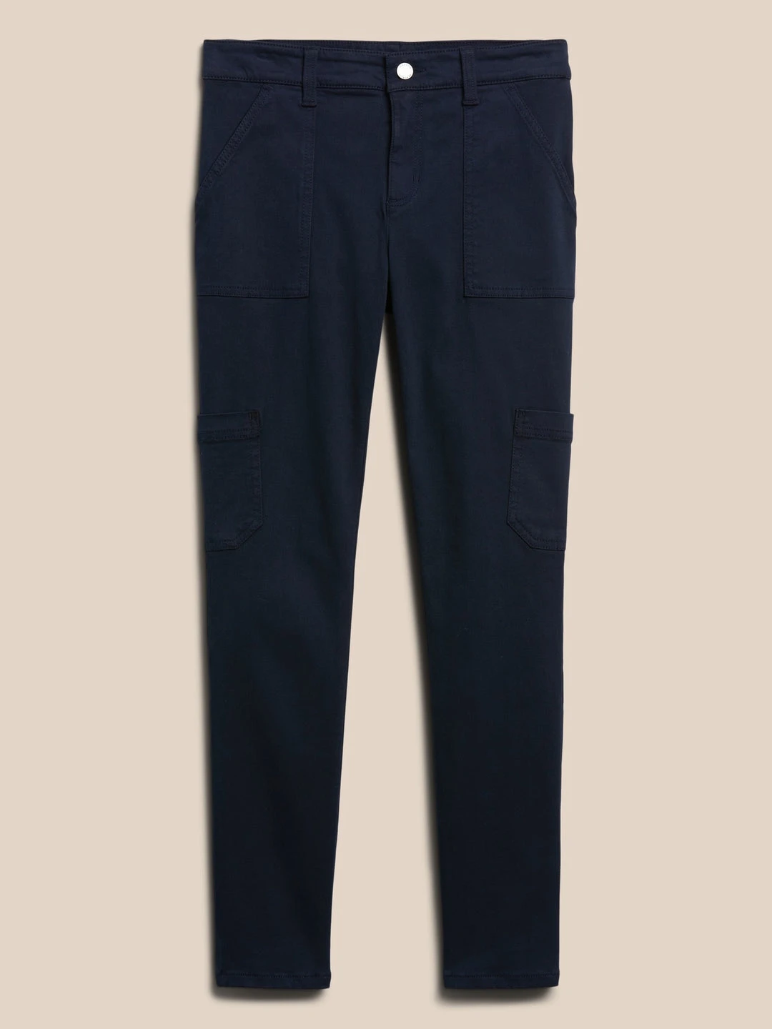 All of the qualities you love about our customer-favorite Sloan pants with the ease of utilitarian design. These soft and stretchy cargos will carry you through your journeys with utility pocket storage and a supportive fit that won’t stretch out. SKINNY FIT – Formerly called the Modern Sloan, this pant has a higher rise and skinny fit through the hip, thigh, and leg. SUSTAINABILITY – Made with LENZINGβ’ ECOVEROβ’, a breathable fiber derived from certified renewable wood sources, produced using methods that reduce water impact and emissions by up to 50% compared to traditional viscose. Zip fly with button closure. Front, back and side utility pockets. Unlined. Skinny fit. Ankle length. Inseams – Petite/Short 26″, Regular 28″, Tall 31″ Model – Size 2 or 12, 5’10” (178cm).
