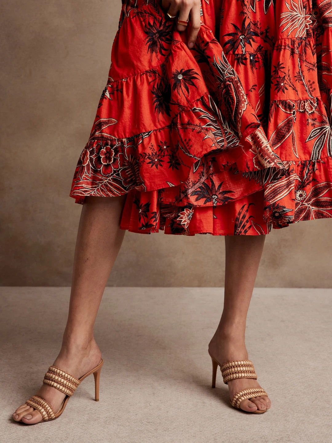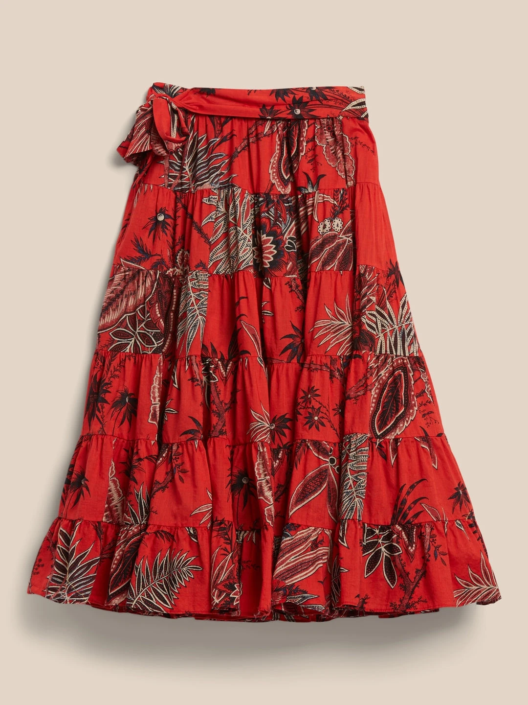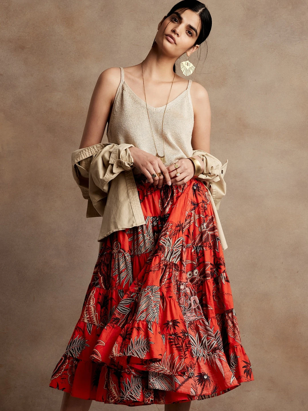 Whimsical romance, this tea length midi skirt offers tiers and tiers of billowing volume crafted from sumptuously soft cotton. Cloudlike innovation in a classic wrap design. A-LINE – High-waisted. Flared from waist to hem. Tie waist. Unlined. A-line fit. Midi length. Skirt length – Petite 31″, Regular 33″, Tall 35.5″ Model – Size S, 5’10” (178cm).