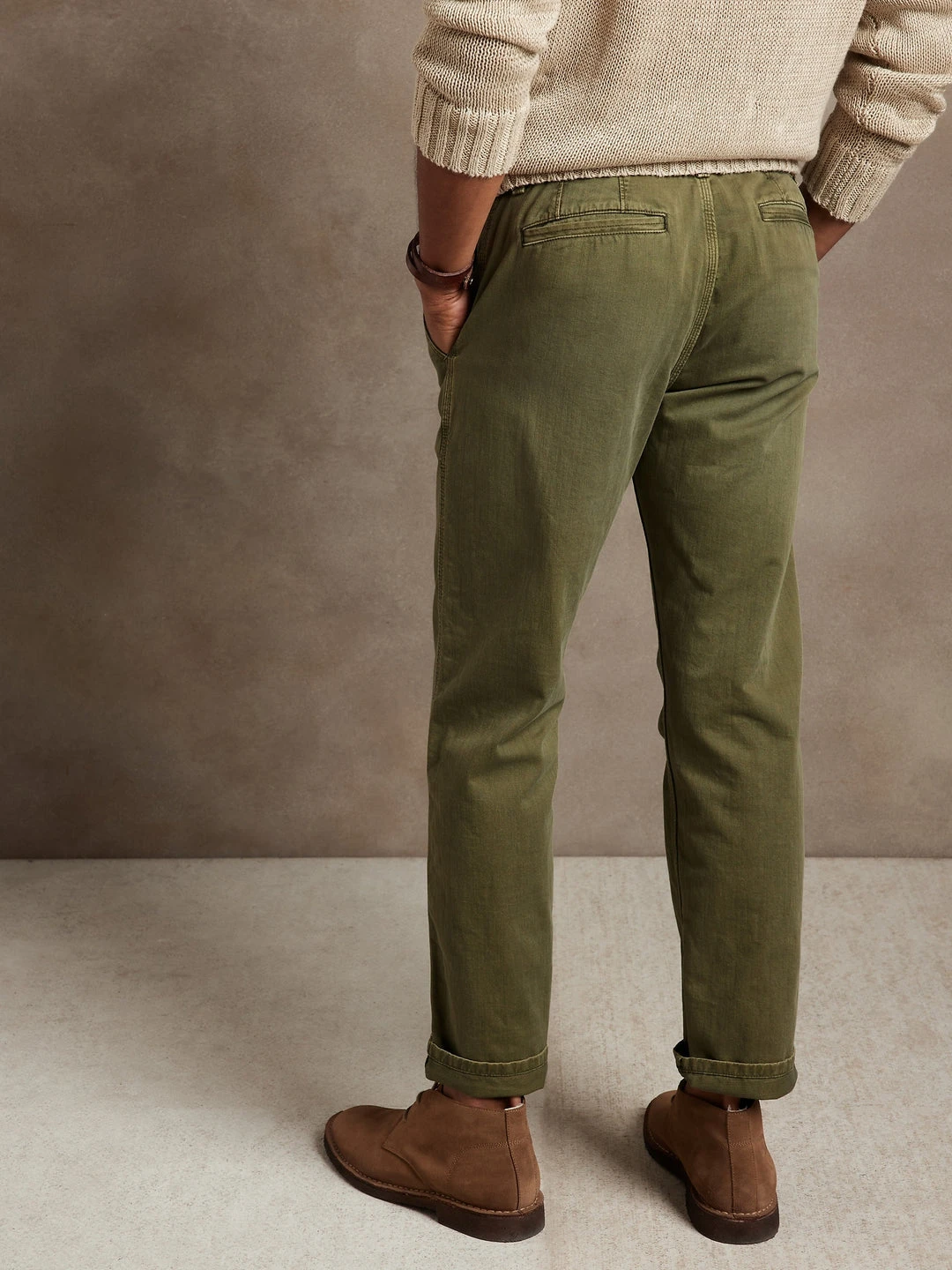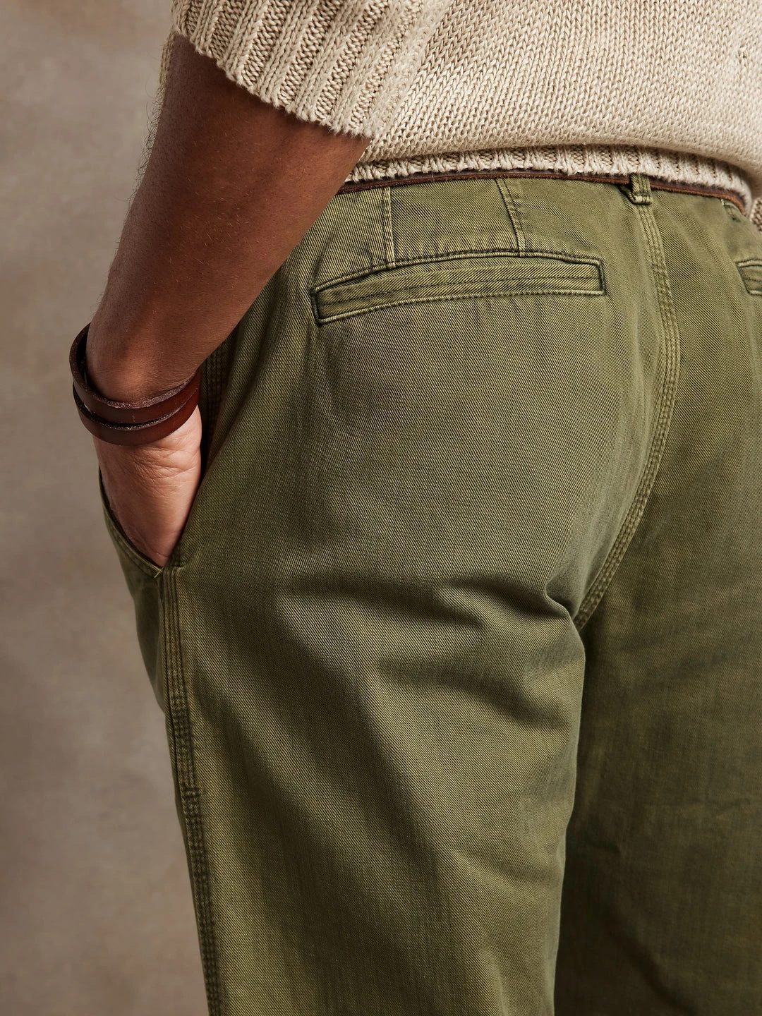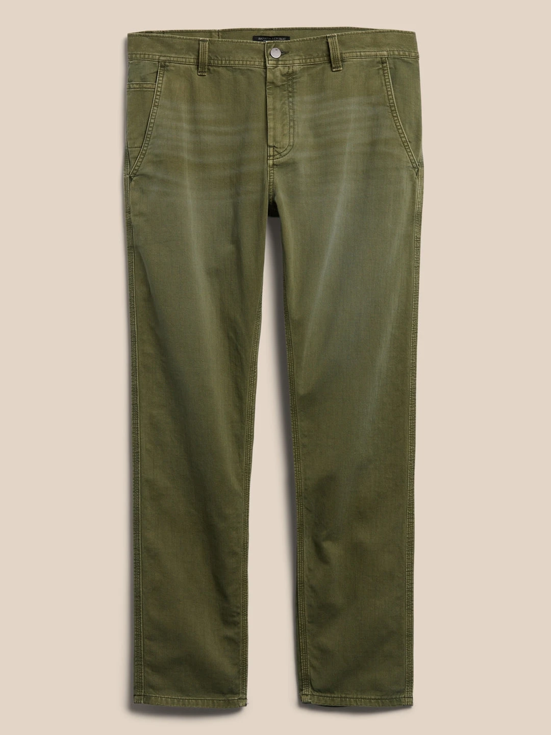 Designed to have that worn-in feel, redefine workwear with our heritage-inspired Authentic Chinos. Crafted with rugged, 100% organic cotton and specially dyed for a dimensional look and added softness, it’s no surprise these are instant classics. Non-Stretch ATHLETIC TAPERED FIT – Not just for athletes, this fit is designed to deliver a modern, slim fit for those who like a little more room through the seat and thigh. ORGANIC – Made with certified, organically grown cotton that’s easier on the earth. GARMENT DYED – Specially dyed for a color-washed look and powder-soft feel. Front, back and side pockets. Zip fly and button closure. Belt loops. Tapered Fit – Mid-rise. Extra room through the seat and thigh. Tapered leg. Slim leg opening measures 6.75″ flat. Inseams – Short 30″, Regular 32″, Long 34″ Model – Size 32 Long, 6’2″ (188cm).