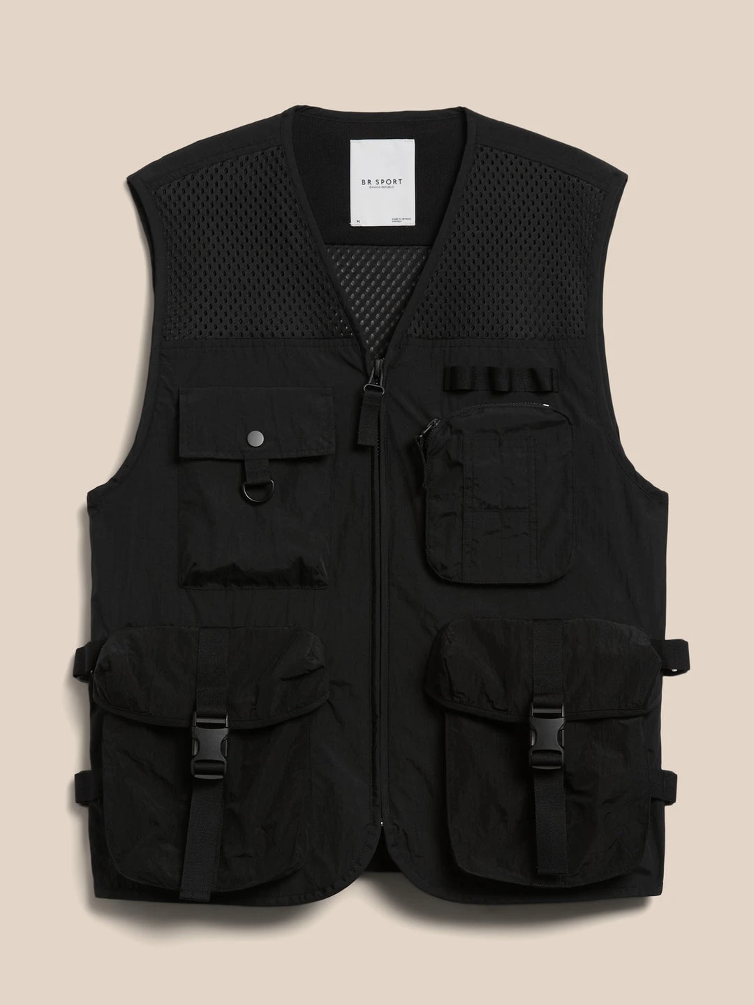 Discover the spirit of exploration with this functional utility vest, teeming with practical accessories for your every adventure, like buckle pockets for secure storage, lightweight mesh lining, and an oversized storage compartment at back for larger items. Breathable, Water-Resistant WARM – Unlined and perfect for layering. RELAXED FIT – Almost oversized, this style is cut with extra room. Zip-front closure. Front and chest pockets. Oversized back pocket. Unlined. Relaxed fit. Sleeveless. Hits at the hip. Body length (size M) – Regular 26.5″, Tall 27.5″ Model – Size M, 6’2″ (188cm).
